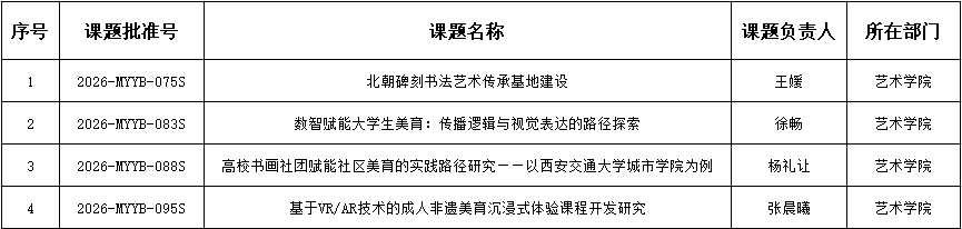 西安交通大学城市学院四项课题获2026年度美育研究课题立项